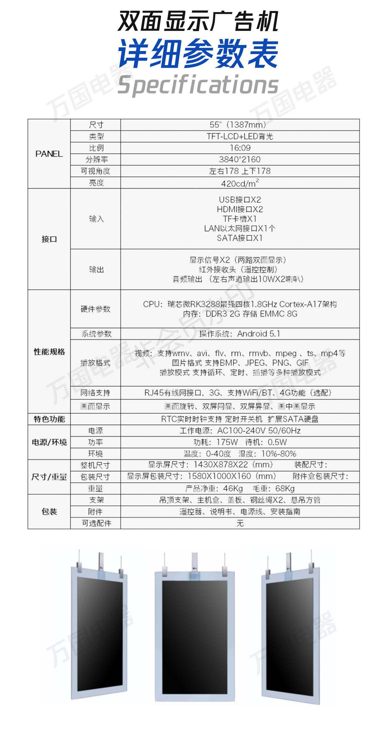 55寸吊挂超薄双面广告机